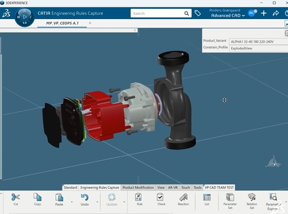 A key differentiator for Grundfos is its extensive use of parametric templates and rule-based design powered by EKL (Engineering Knowledge Language). This approach allows engineers to configure and generate thousands of pump variants directly within CATIA, dramatically accelerating design iterations across a vast product portfolio.
