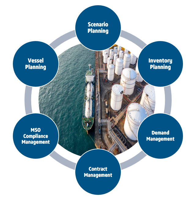 Full fuel inventory visibility across the network. Vessel planning and scheduling connected to inventory. Distribution planning with live constraint validation. Scenario planning capability the team can use without specialist support. Compliance monitoring for minimum stock obligations.