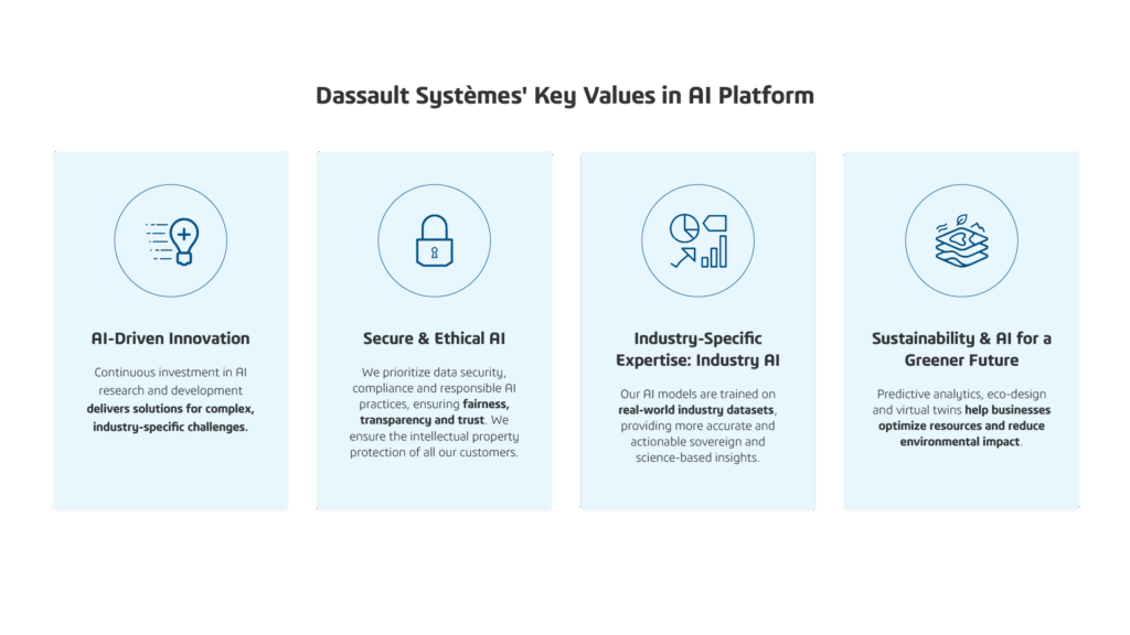 At Dassault Systèmes, these principles underpin the development of AI software technologies designed for industrial applications. The focus extends beyond performance to include transparency, data integrity, security and responsible governance – ensuring that AI systems support sustainable innovation rather than introduce uncontrolled risk. Learn more about this approach to AI here.