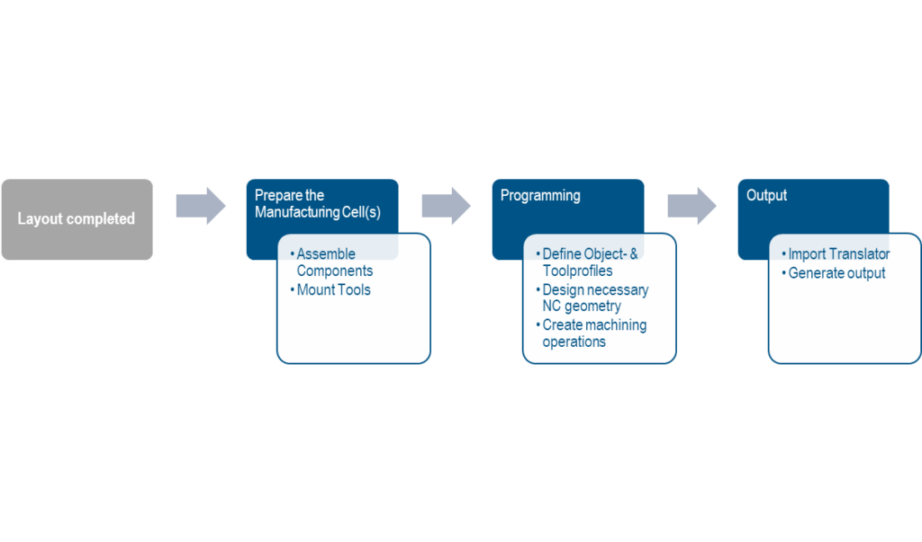 The ”Machining Axis Systems“ which define the object profiles have to be positioned at the absolute origin of the manufacturing cell. The object profiles are automatically created, based on the machining axis systems, when generating the output.
