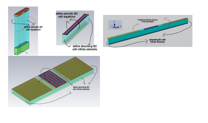 Our simulation strategy involves several levels of model simplification, from a unit cell to a complete 3D model, offering flexibility to designers. We employed three primary methods to detect the resonant frequency: