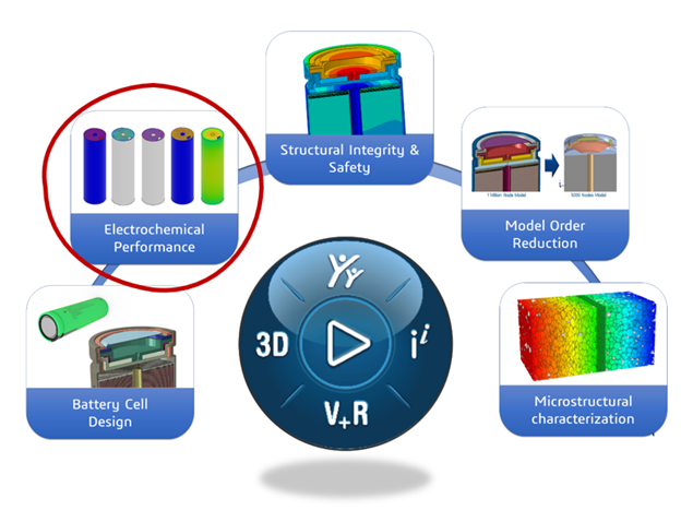 To design an efficient battery cell, it is essential to consider appropriate operating condition effects like temperatures, ionic flow, voltage and current variation, abused structural loads, and the correct cell geometry. Dassault Systèmes has developed different workflows to help engineers validate and enhance battery cell performance under various conditions, addressing multiple physics streams like electrochemical, thermal, structural, etc. We will discuss a few of these methodologies in a later section.