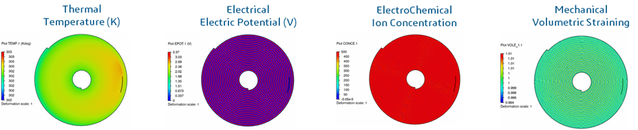 This analysis examines micro- and macro-scale diffusion, thermoelectrical losses, and charging and discharging effects. Electrochemical analysis can be performed using porous electrode theory (PET) in Abaqus/Standard, based on a homogenized Newman-type approach that simplifies the complex pore geometry.