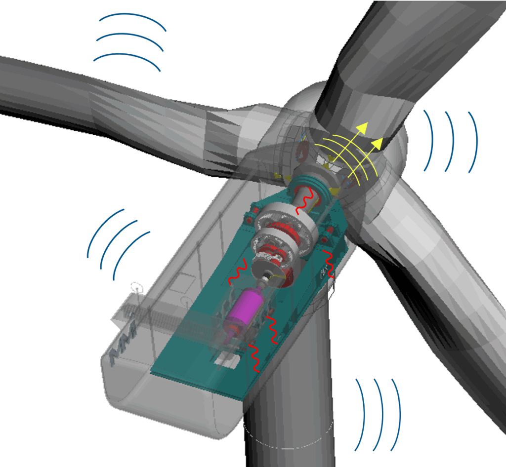 - Identify the Source: A main source of tonal noise is the gearbox. As gear teeth engage, the changing contact stiffness creates excitations known as Transmission Error (TE). While helical gears and micro-geometry corrections reduce TE, they cannot fully eliminate it across all the load conditions a turbine experiences.