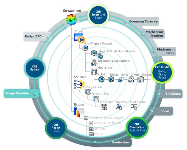 Within many companies, the design and testing departments are separate and rely on manual data transfer between them. The designers will continually update their designs to reflect changing requirements, while the testing department may conduct analyses using outdated design data. The transfer of the latest design to the testing department is often a manual process that requires converting the input data for the simulation tools. This process is time-consuming and subject to human error. Likewise, after the simulation is complete, any feedback to the design department is manually completed and separated from versioning in the resulting design updates.
