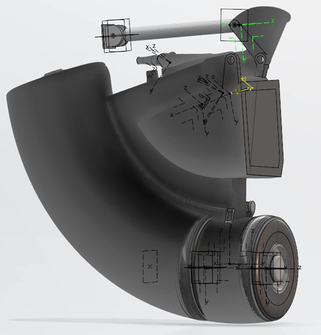 Landing gear designers and analysts work on the same model, thus avoiding translation and version control issues between CAD and CAE.
