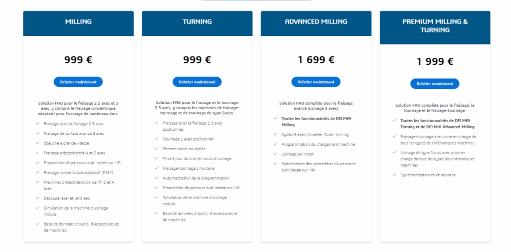 - IA : Apprendre des données d’usinage réelles pour prédire les résultats, explorer des scénarios et suggérer les meilleurs outils, avances, vitesses et stratégies.