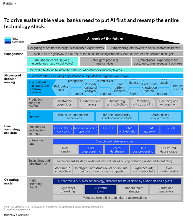 The rise of copilots reflects this hybrid approach, where humans and machines work together, combining their strengths to constantly generate greater value…and values! Internally, analyst assistants, development copilots, and fraud detection agents augment human capacities. Externally, personalized financial concierges offer an enhanced customer experience, available 24 hours a day.